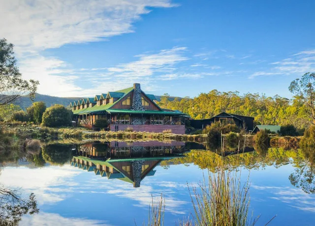 This lakeside lodge on the edge of Tasmania’s Cradle Mountain-Lake St. Clair National Park features private cabins, a cozy fireside lounge, and acclaimed local food and wine.