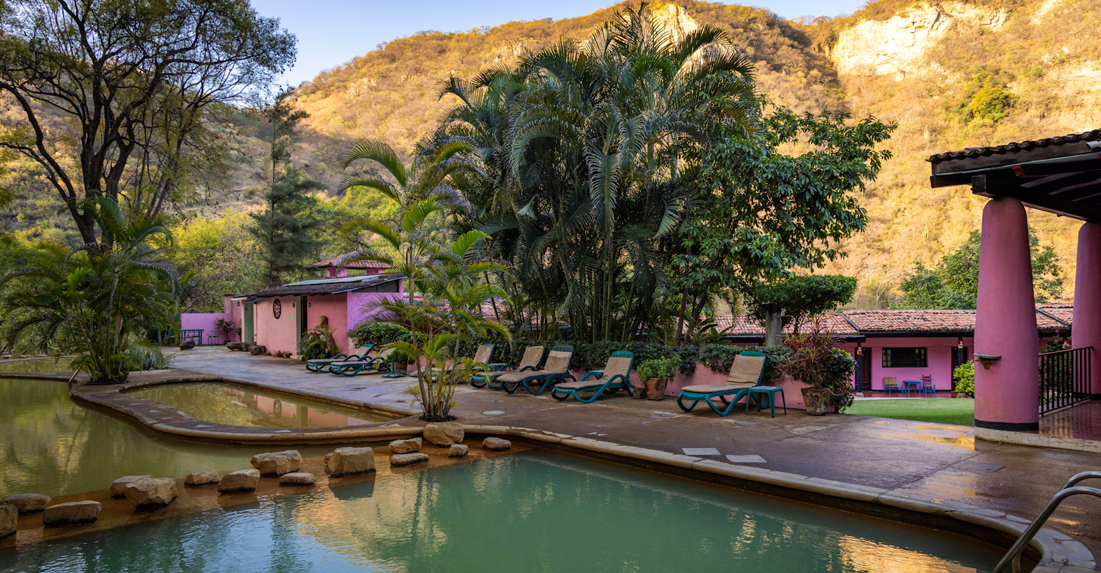 Agua Blanca's main draw is its mineral thermal springs, whose healing powers were revered by the ancient Purepecha Empire. The rock-lined pools maintain an average temperature of 85° F, providing a comfortably warm and soothing experience. In addition to the thermal pools, the hotel also has a spa and a traditional Temazcal steam bath. The Temazcal, a sweat lodge, is believed to help with purification and healing and is available for an additional fee.