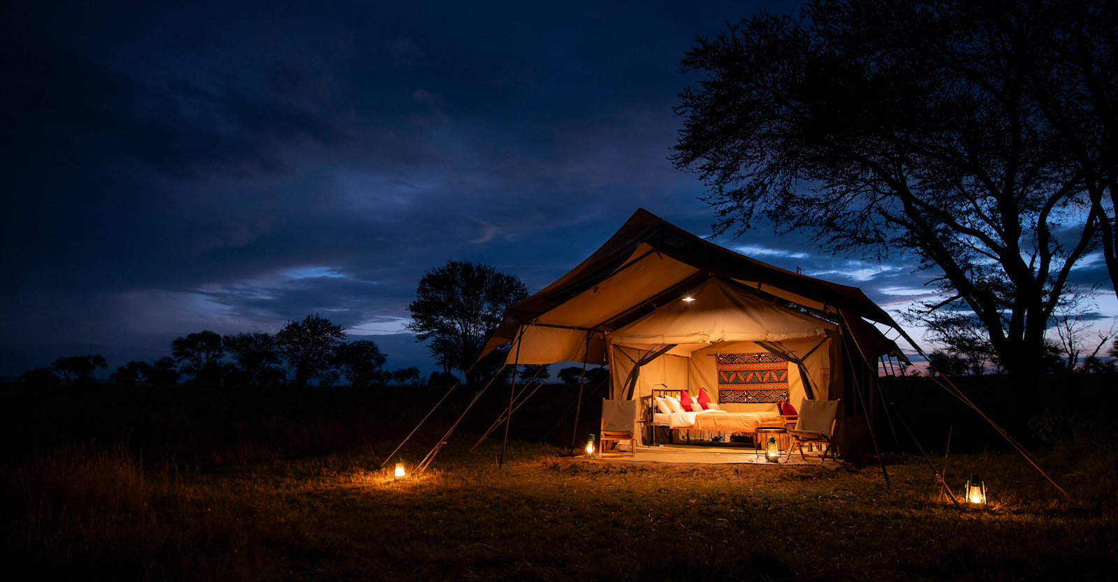 This solar-powered mobile tented camp moves with the wildebeest migration, shifting with the herds as they traverse the Serengeti. From December to March, it is set on the southern grasslands; from June through October, it relocates north, always in step with the movement of wildlife.