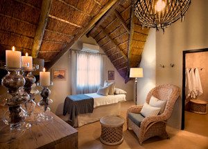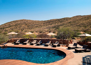 The main house, which rests at the foot of the Korannaberg Mountains, is comprised of local stone, red clay, and Kalahari thatch, evoking the influences of nature and local culture. Inside is a lounge, dining area, mezzanine library, a museum of local artifacts, wine cellar, spa, and gym. Across from the shimmering, heated swimming pool are six suites and three family suites, each accommodating up to four guests. The suites consist of a generously sized bedroom and bathroom with indoor and outdoor showers, and a separate dressing and study area. Guests are also delighted to have an open fireplace and a private sun deck that overlooks the nearby watering hole. And for those desiring a few modern comforts, wireless internet and satellite television are additional treats. Accompanying this impressive site is Tswalu’s five-bedroom lodge that sleeps up to 10 guests.