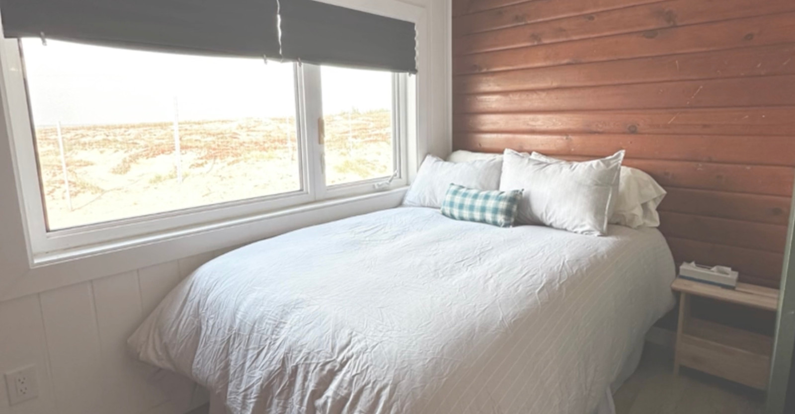 The eclectic hostelry is composed of three unique homes that were renovated and brought together to comprise a modern small hotel rooted in history. Reflecting the diverse heritage of the buildings, none of the 12 guest rooms is exactly alike, but all have an en suite bathroom with toilet, sink, shower and toiletries, and high-speed Starlink Wi-Fi. Rooms are simple, homey and cozy with minimalist furnishings in a white and gray palette, with knotty pine or light wood accents. A large common room has a comfortable sofa and overstuffed chairs, panoramic windows overlooking the tundra and bay, and a wood stove adds extra warmth and ambience. The kitchen and dining area has a large communal table for sharing meals, hearing presentations and editing photos. A large outdoor deck offers plenty of space for nightly aurora viewing opportunities. Wildlife constantly frequents the area around the lodge, with fox, wolf and Arctic hare common winter sightings, while polar bears amble by in summer and fall.