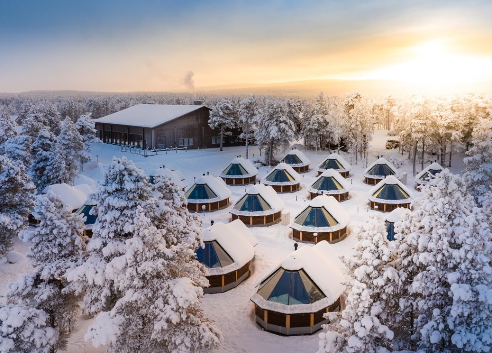 Wilderness Hotel Inari, located in the heart of Finnish Lapland, offers a unique encounter with Sami culture and Arctic adventure—not to mention nothing but a glass roof between your bed and the northern lights! Located just outside the Sami village of Inari, this unique lodge is the optimal base for an immersion in pristine nature and Sami culture. We stay in glass-topped Aurora Cabins with an unobstructed view on the northern sky. The laser-heated glass roof over your bed ensures frost-free viewing of the stars and aurora no matter how cold it gets outside. Highlighting the hotel's commitment to the environment, Aurora Cabins are solar-powered and heated with biofuels. Cabins have warm wood interiors, two twin beds with cozy duvets and furry throws, an en suite bathroom with shower, a sofa, and a kettle in the room for making hot coffee and tea. Wi-Fi is available in the lobby and restaurant areas. Restaurant Hirvas serves up gourmet Lappish dishes such as salmon soup, alder-smoked reindeer roast and whitefish from Lake Inari. Huge picture windows feature panoramic views over Lake Inari, and occasionally diners have been known to forget about their meal as they abandon their tables to rush out to the lake's edge for an appearance of the northern lights. Even the sauna has a glass roof to ensure that no aurora-viewing opportunity is lost!
