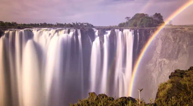 Victoria Falls is the Eden of Africa. Spray from the cataract creates a multitude of rainbows and forms a rain forest microclimate, with lush greenery growing along the canyon sides. The thunderous, iridescent water is astounding to behold. Learn more about one of Earth’s greatest natural wonders with these 5 facts.