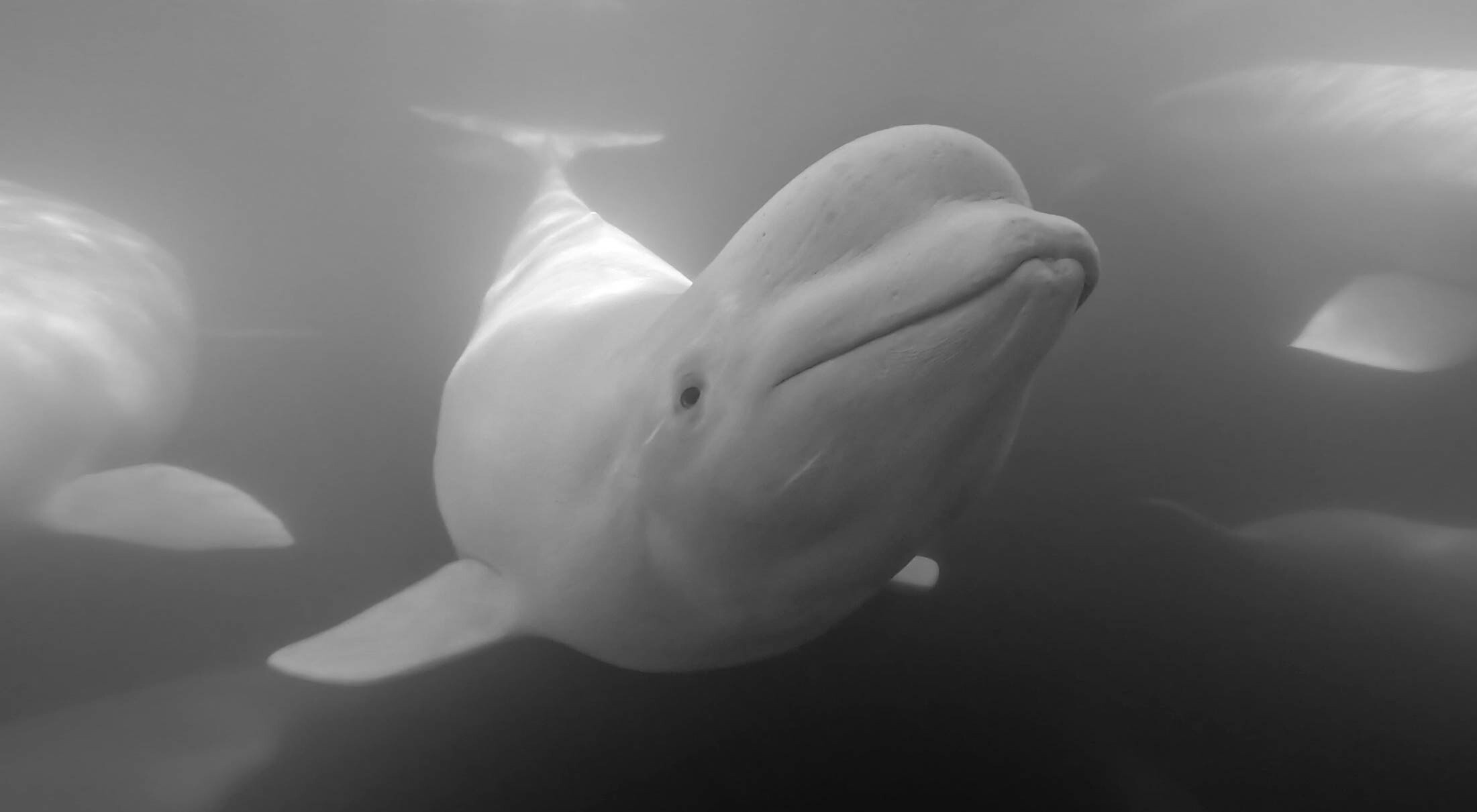 Photograph Dozens of Beluga Whales Up Close