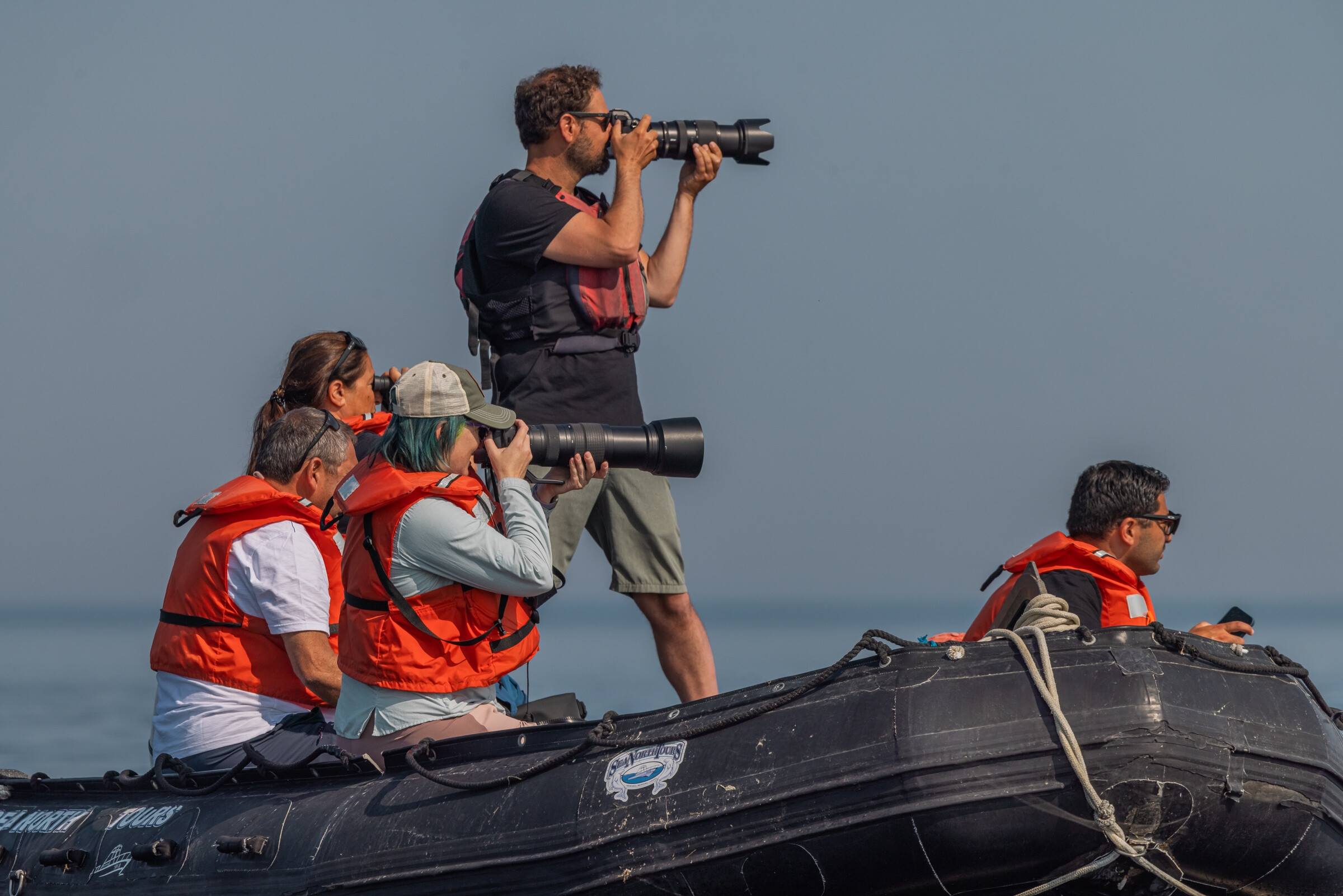 We use our own private motorized rafts, chartered from Churchill’s highest-quality and most reliable boat company, to visit belugas in the mouth of the Churchill River—with no more than seven passengers per boat. This ensures clear viewing, easy photography access, and a flexible timetable.Opportunity to Paddle with the Pod