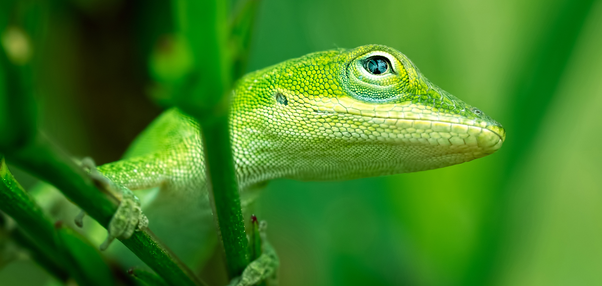 Green anole lizards are used in hearing research to study inner-ear regeneration, sound localization and to develop potential therapies for human deafness. These lizards use specific gene regulators to turn supporting cells into new sensory cells, a mechanism not active in mammals. ©Brad Boland/Shutterstock.com