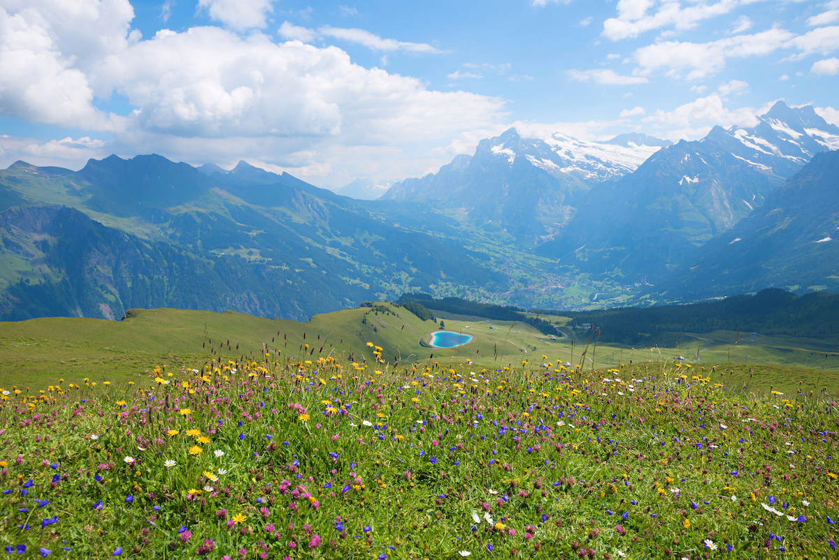 Beautiful,Wildflower,Meadow,In,The,Swiss,Alps,,View,To,Grindelwald