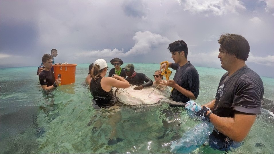 In Belize, Aaron worked alongside fellow high school students and marine scientists, including Demian and Katie Flowers, tagging stingrays and reef sharks and deploying baited remote underwater video cameras. The data contributed to Global FinPrint, the world’s largest survey of reef sharks and rays.
