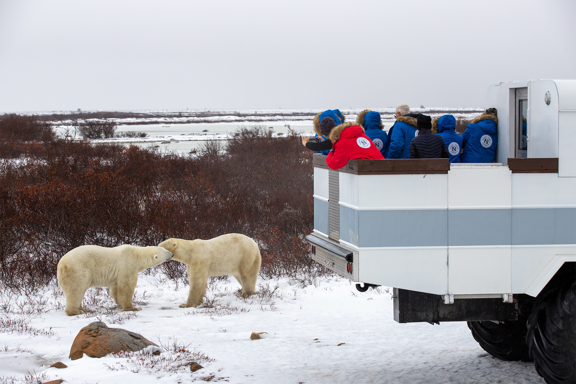 great bear tour in churchill canada travelers photograph two polar bears kissing
