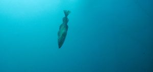 A sea lion swims near the photographer underwater in the Galapagos Islands