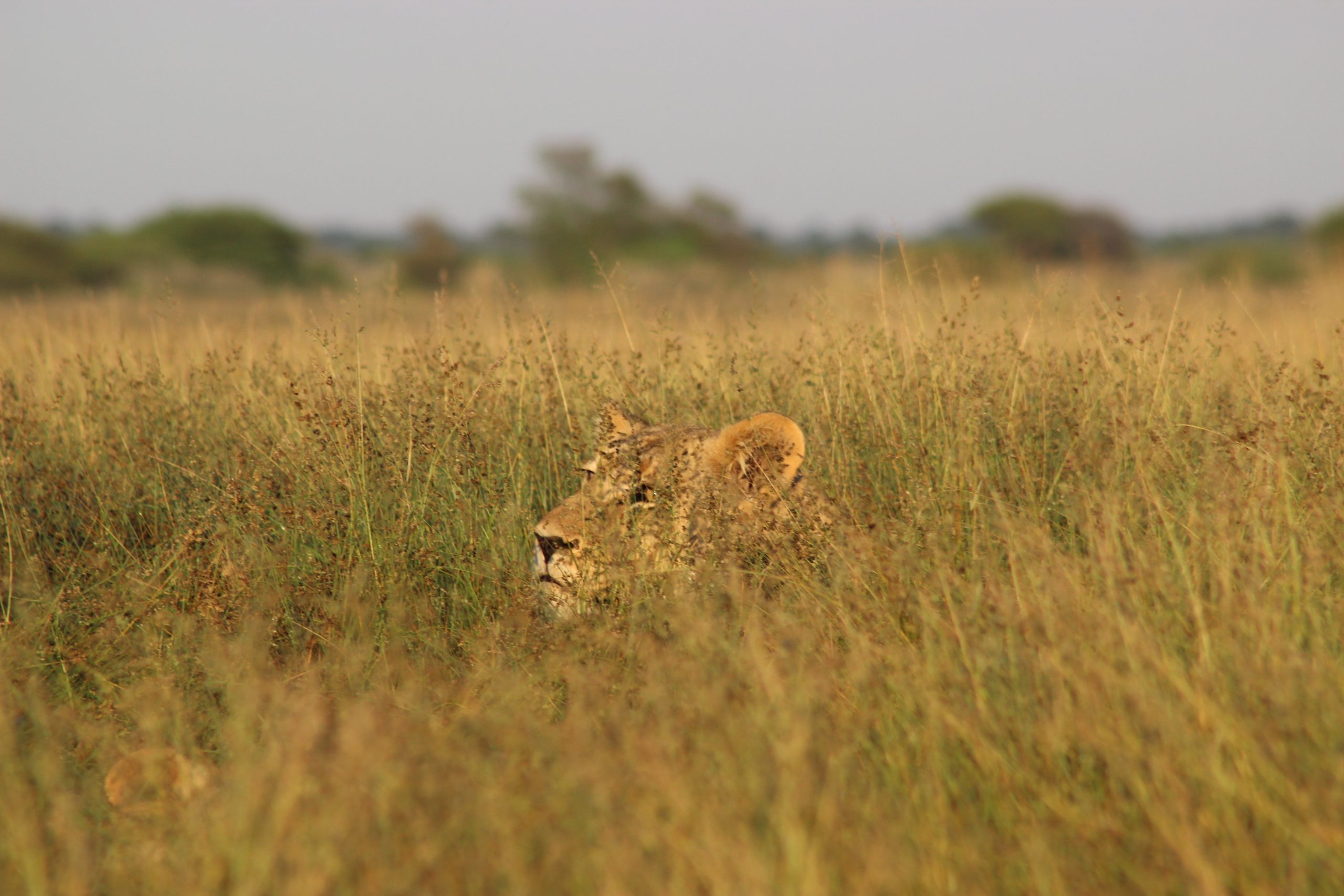 Four days into our safari in the Okavango delta, we tracked a lone male lion all morning to no avail. In the rainy season, the wildlife is gorging on nature’s abundance and is able to spread out beyond the larger waterholes and rivers, and they much more easily hide in the tall grass. Thuto, our guide, explained that our lion could be snoozing 15-20 feet away from our vehicle and we would never know because of the tall grass.