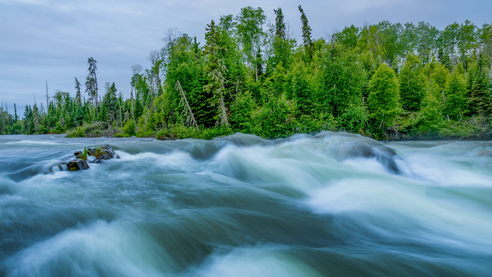 Northern Canadian Shield River and Lake System in Summer