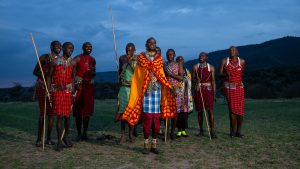 Maasai people perform traditional jumping dance ceremony.