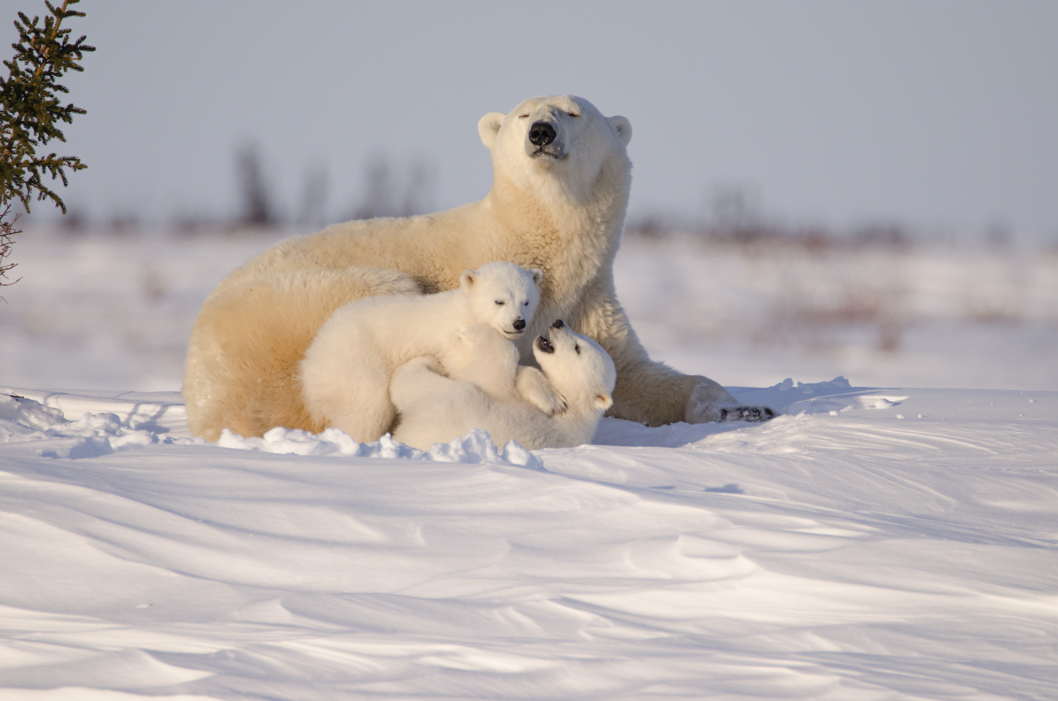 In the summer, Churchill’s polar bears live in and around Wapusk National Park, south of town. Just over 4,400 square miles, the park is a refuge for pregnant bears. Maternity dens pop up on the peatlands of this protected area, one of the largest of its kind in the world.