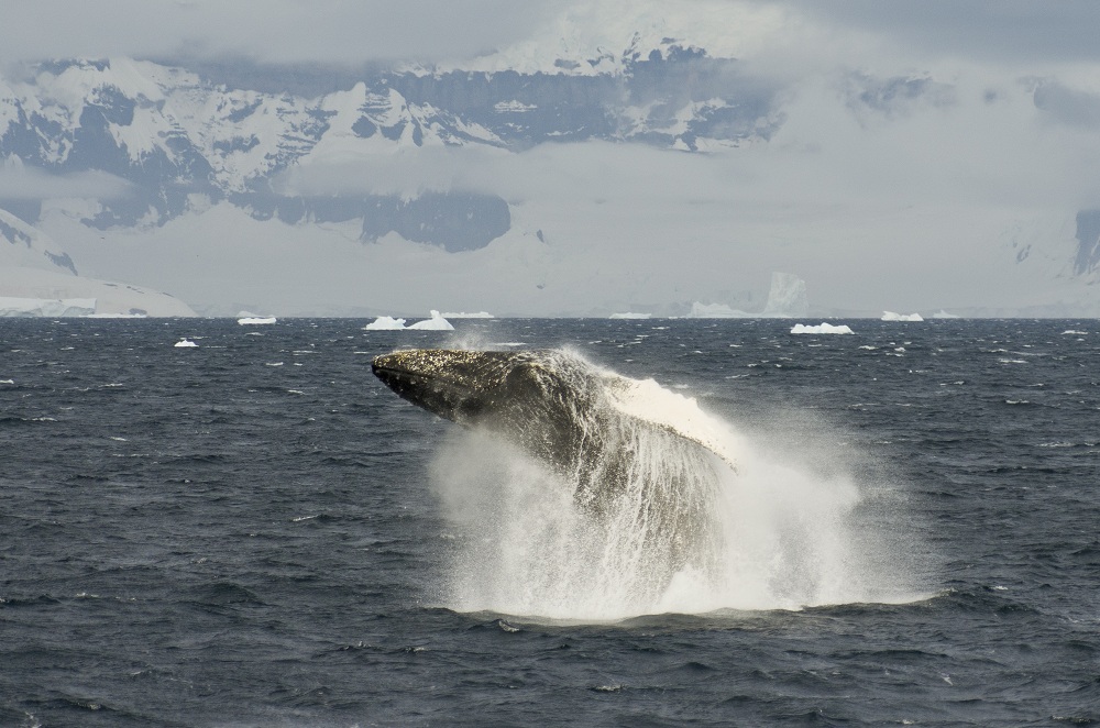 As you get closer to Antarctica, usually your whale experiences come a little closer. The water is calmer and the whales in Antarctica are easier to see. Instead of just a plume of water, you might now see the back of the whale with your naked eye, or if it’s a Humpback whale, you may see its fluke (tail) as it prepares for a deep dive.