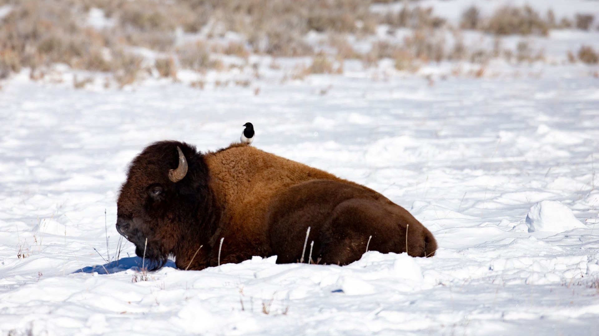 Bison with bird Yellowstone National Park by Jeremy Covert