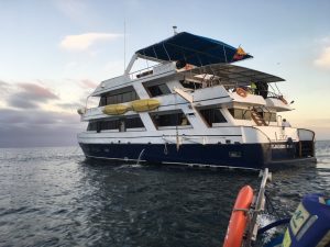 A sea lion swims near the photographer underwater in the Galapagos Islands