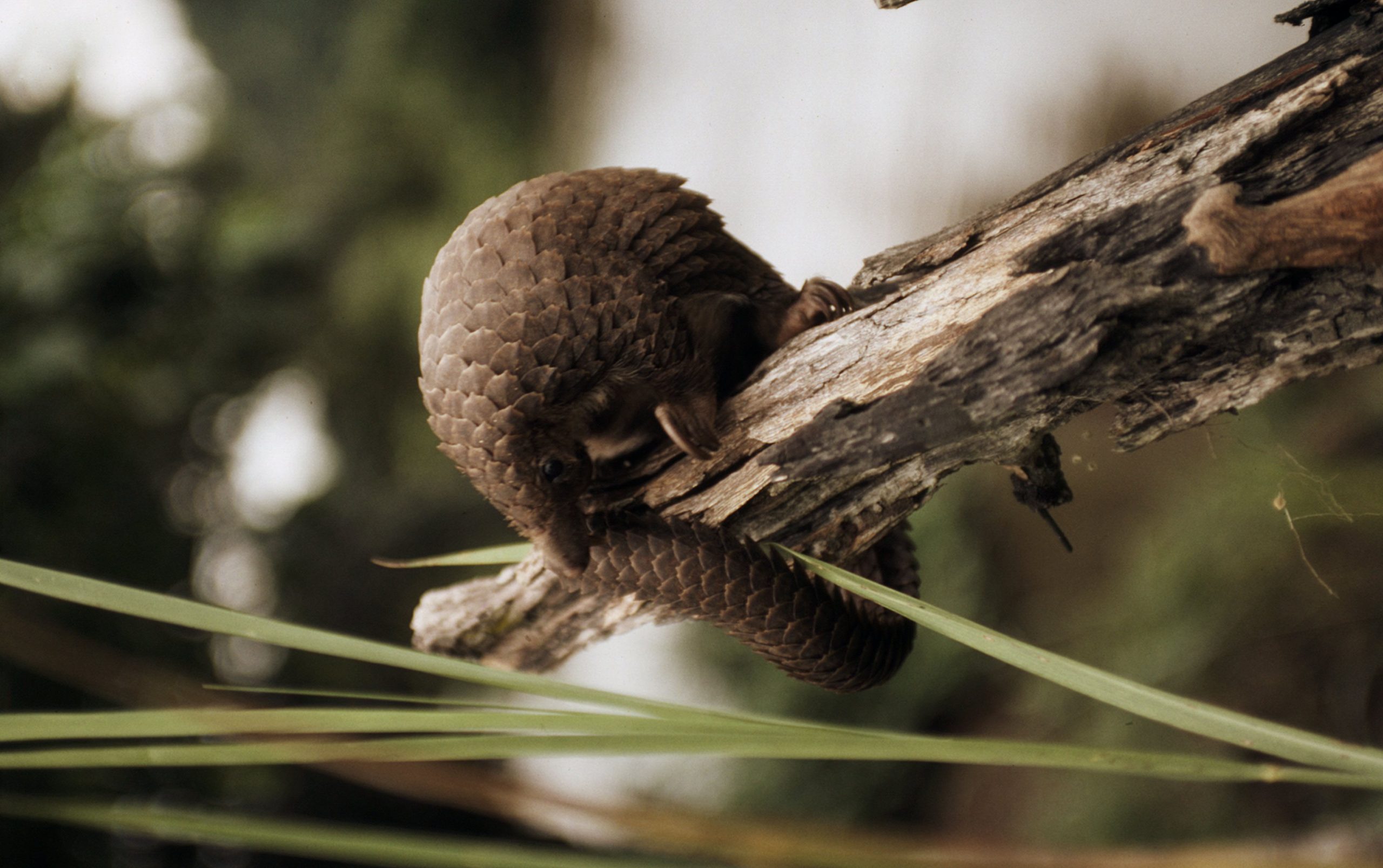 The pangolin typically walks on its hind legs, using its tail for balance. Found in 15 countries throughout Eastern, Central and Southern Africa, the pangolin is hunted for meat and for use in traditional medicine.