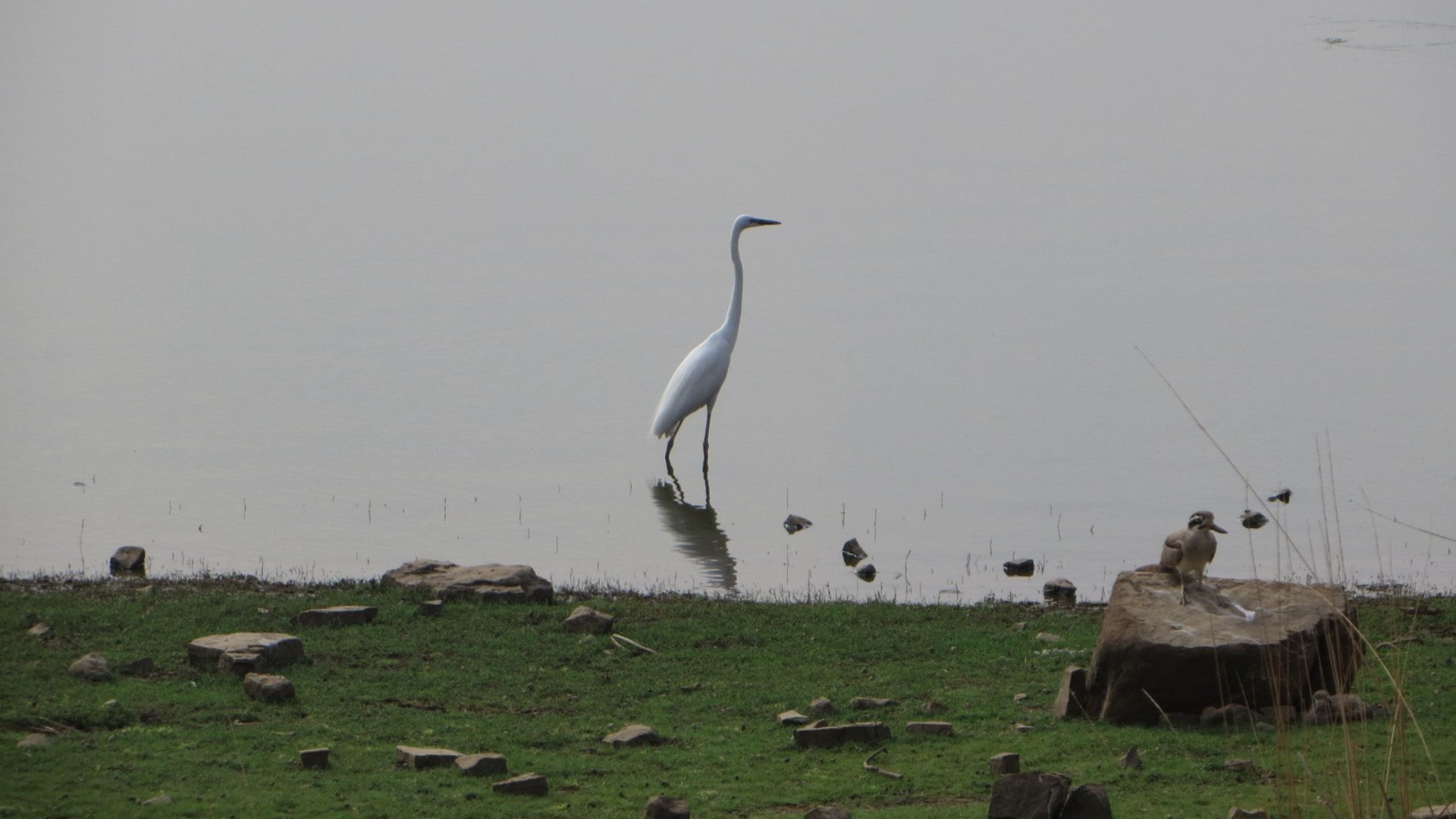 Snowy white egret in water standing tall in India
