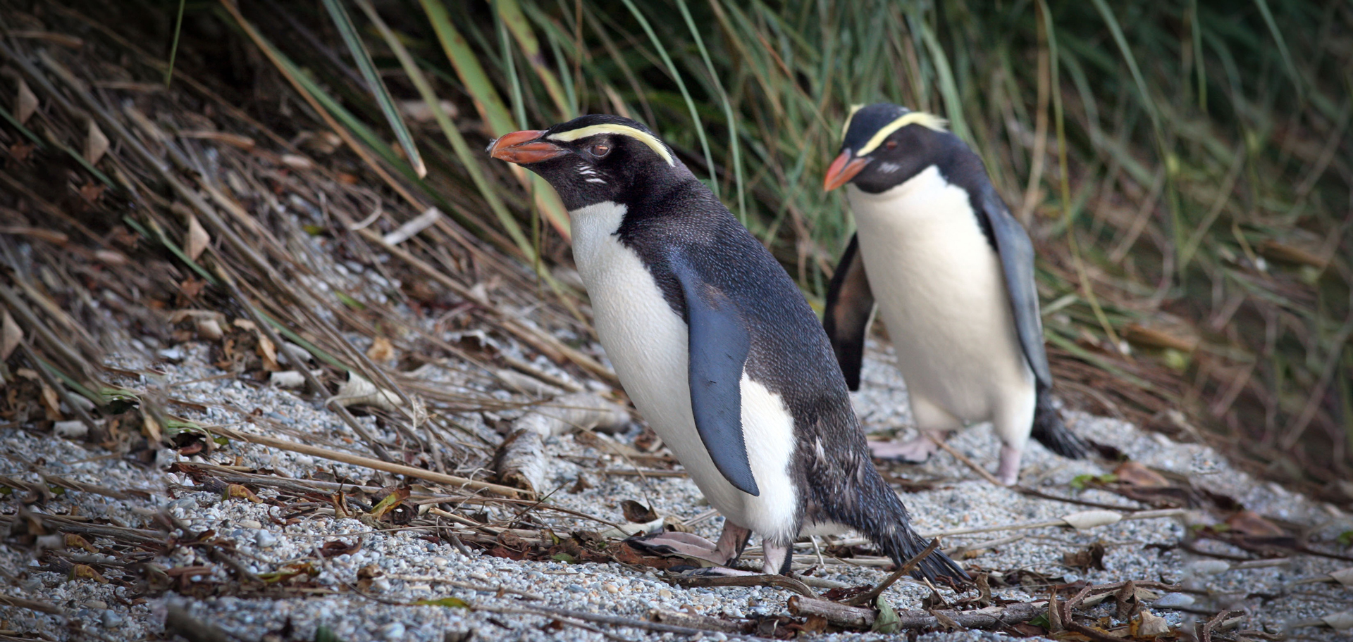 A close-up of two king penguins on South Georgia Island