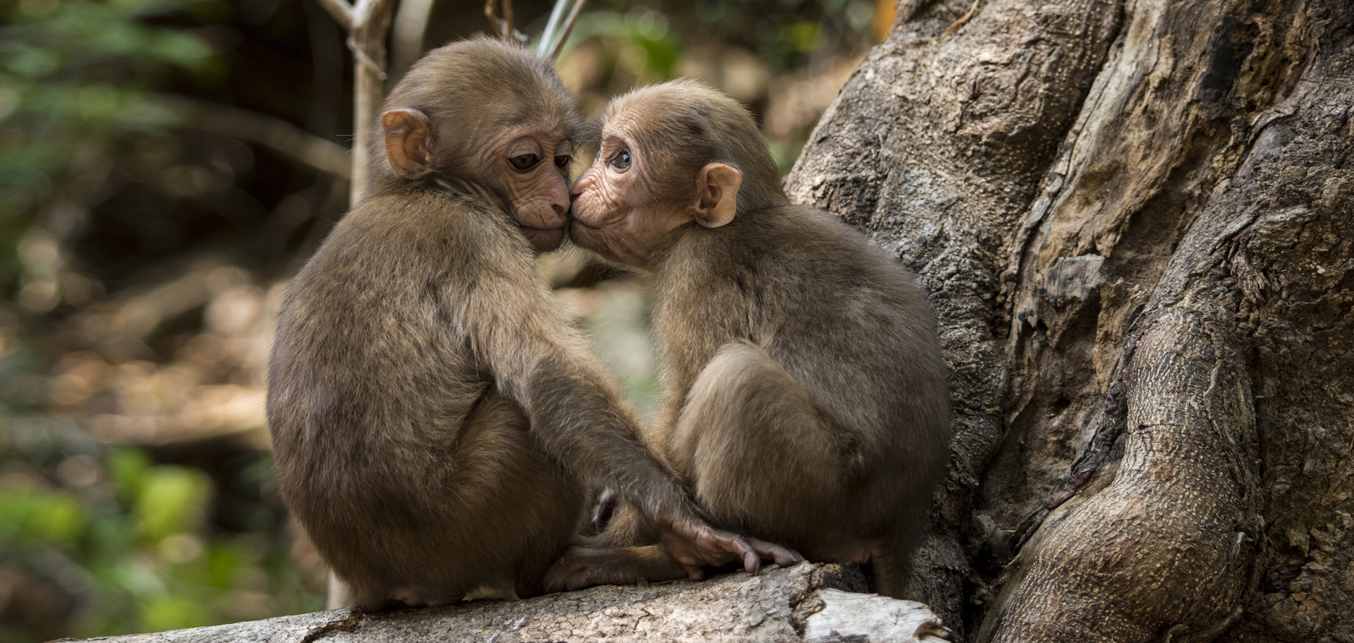 Evidence shows that kissing may have originated in ancient primates. Kissing behavior is observed in today’s monkeys, who seem to enjoy affectionate communication. ©Kittisak Srithorn/Shutterstock.com