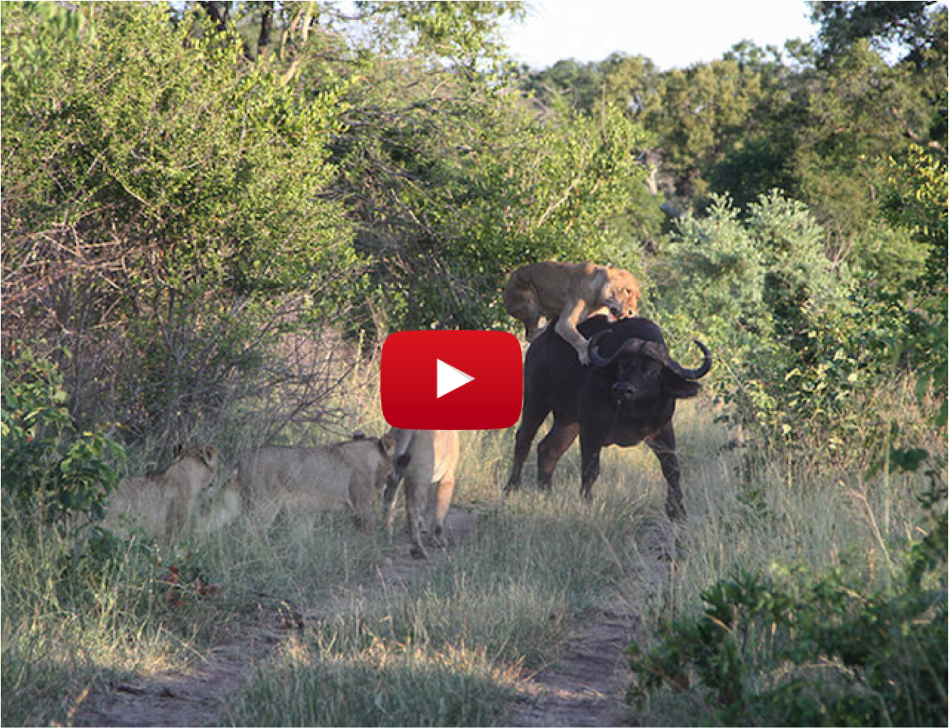 When they reached the top of the ridge the buffalo, already wounded, was facing a down a female lion.