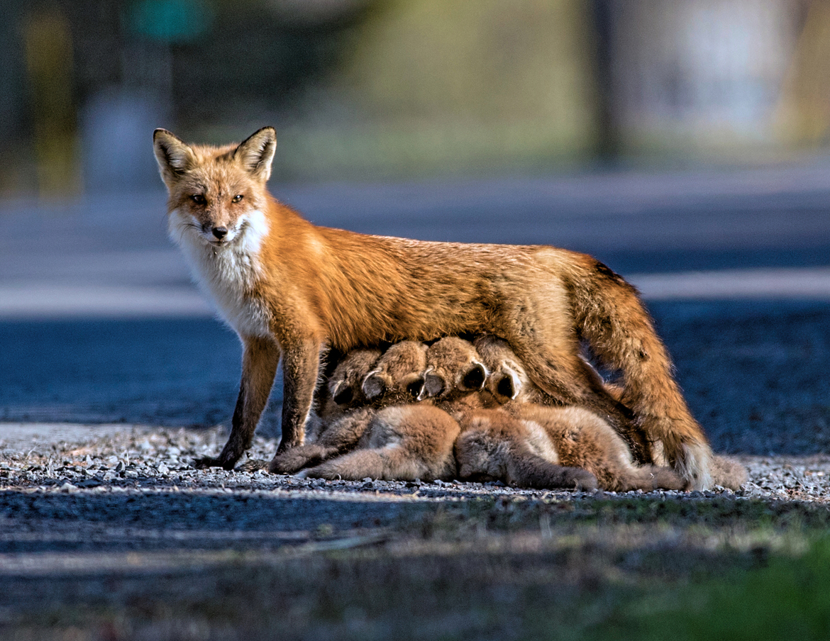Photographer Rob Julien came upon a mother feeding her cubs along a rural road on an early morning in Ottawa.