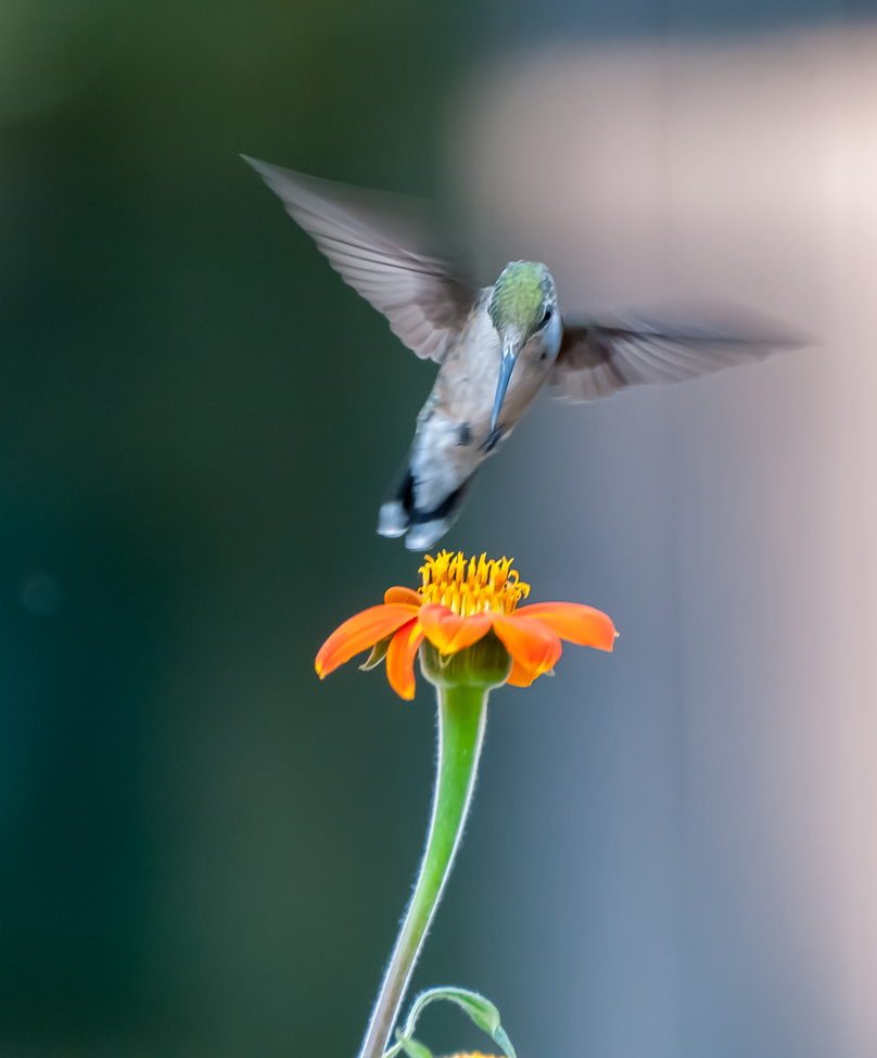 Photographer William Friggle captured the moment this hummingbird hovered over a Mexican sunflower.