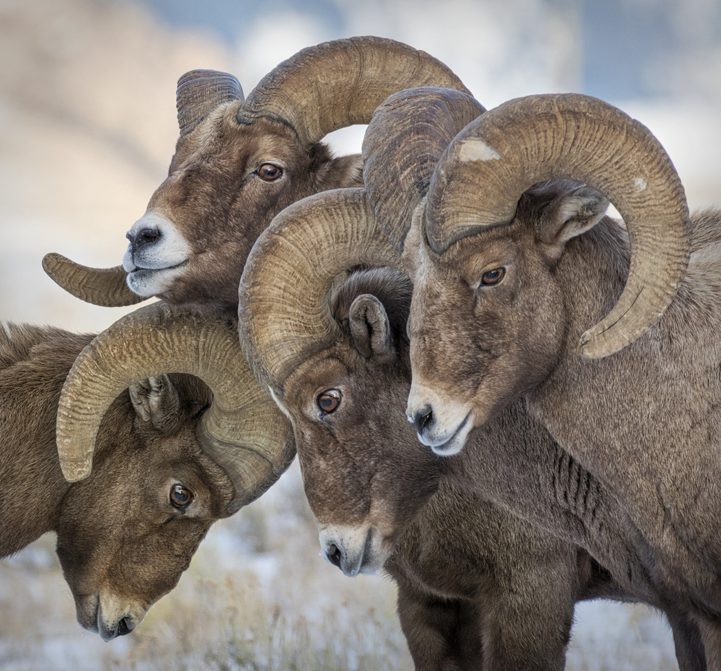 Photographer Lynn Oakleaf photographed bighorn sheep appearing to huddle in the National Elk Preserve.