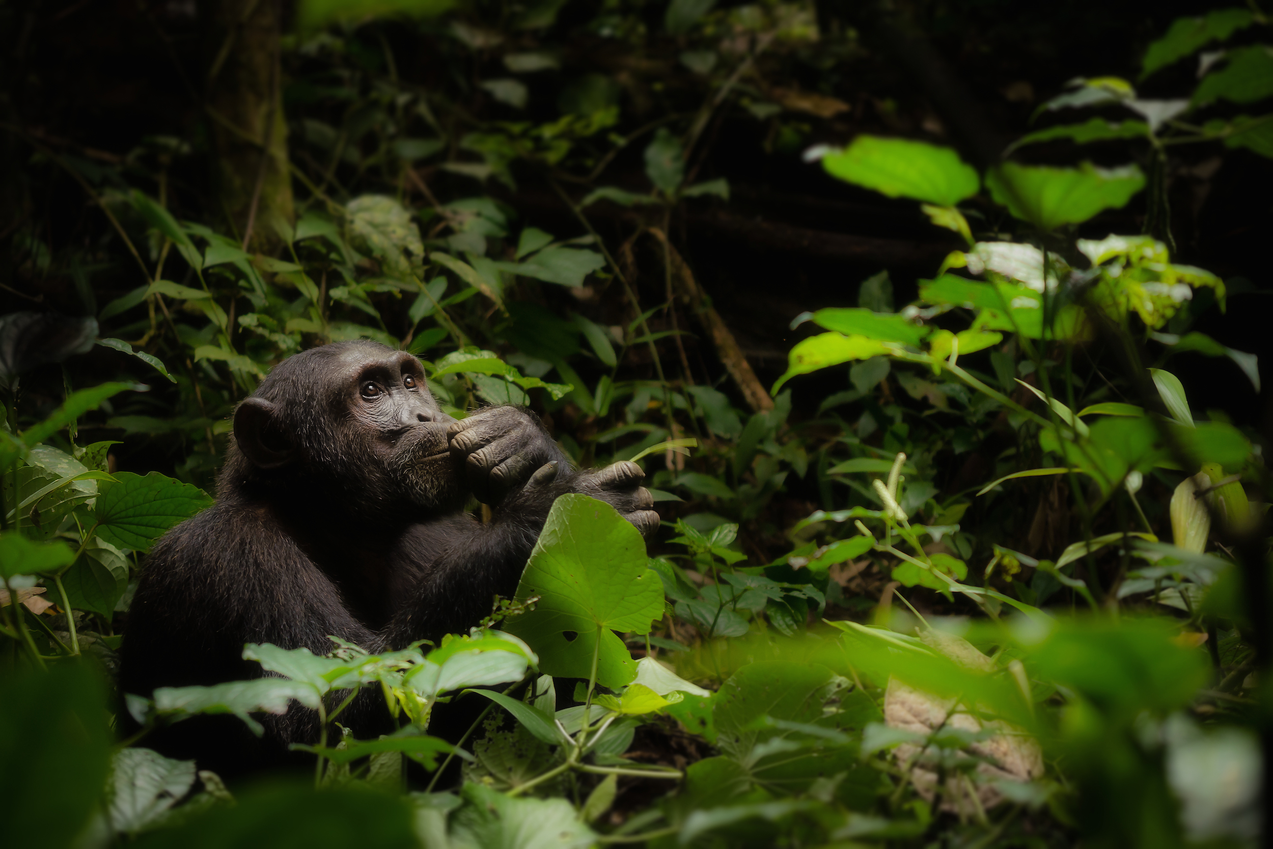 Photographer Cheryl Ramalho captured this chimpanzee’s contemplative moment trekking through the dense forests of Uganda with Nat Hab.