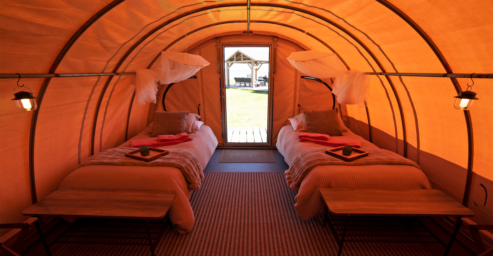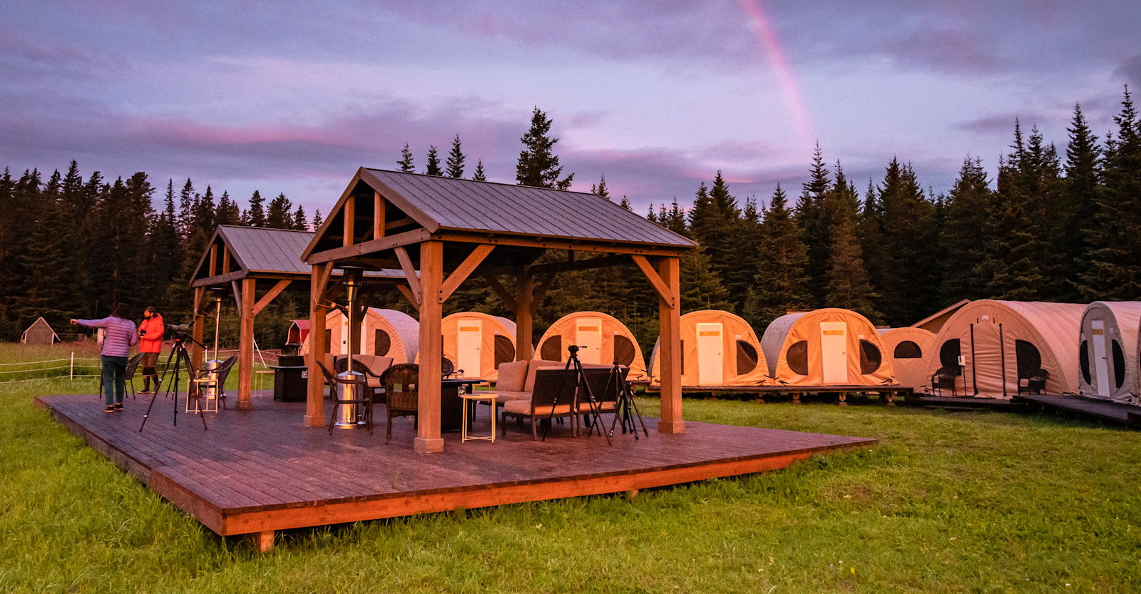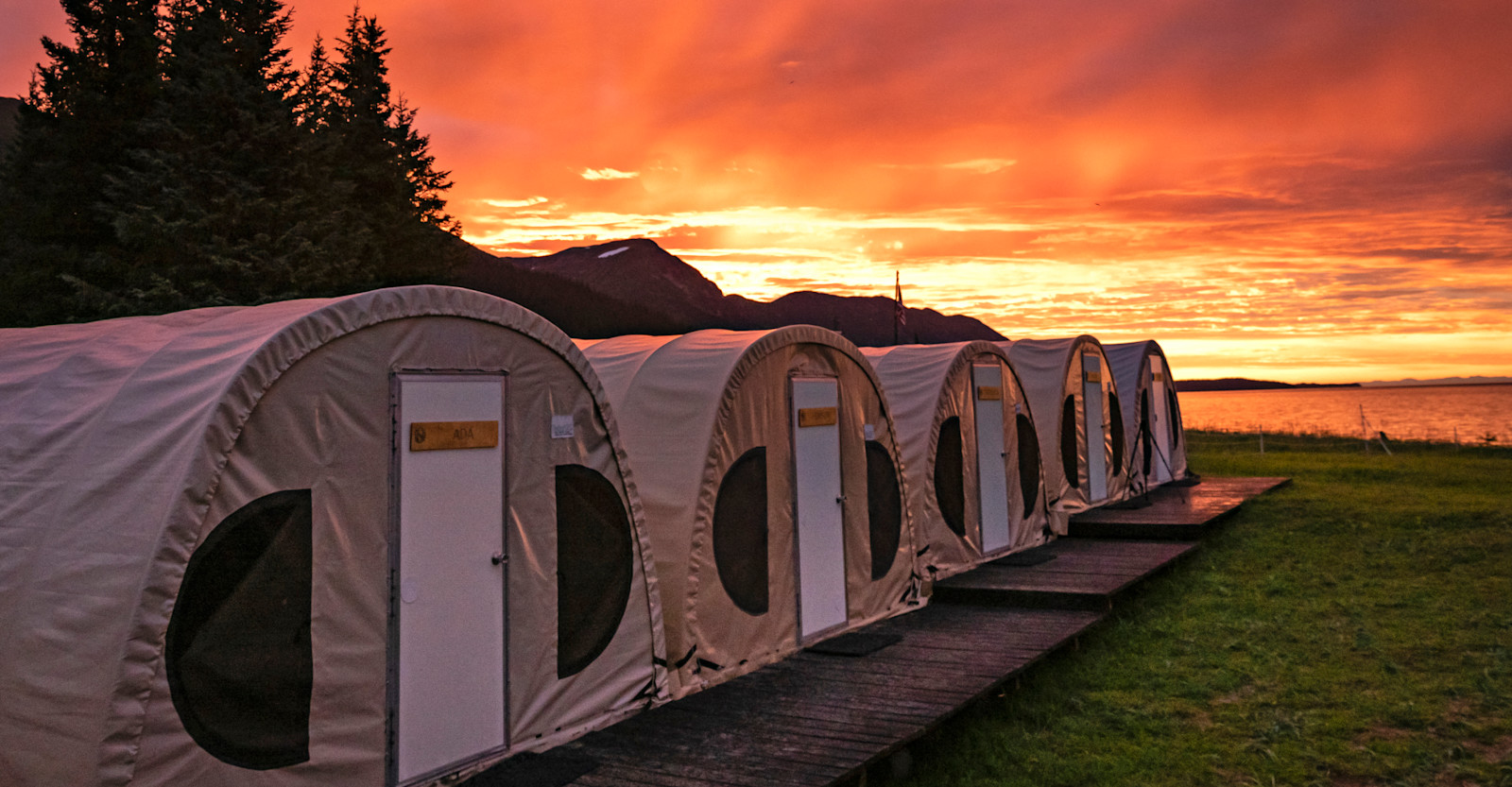 A new timber-framed dining hall and lounge offers an open, light-filled central gathering space with floor-to-ceiling windows and garage-style doors that open onto an expansive deck. Connect here for guide talks, shared stories and inspired meals prepared by our resident chef. Locally sourced fare includes wild-caught fish straight from Alaskan waters.
