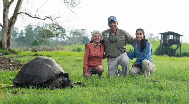 Set in lush Scalesia forest and meadows with a view of the Pacific Ocean below, our rustic camp features accommodations in raised canvas tents and treehouses surrounded by wild tortoise habitat.