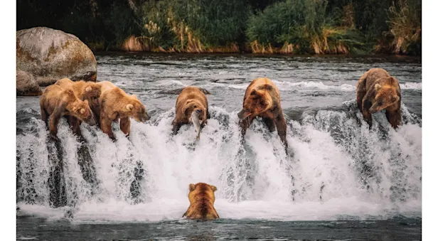 Brooks Falls, Katmai — best during peak salmon runs (July)