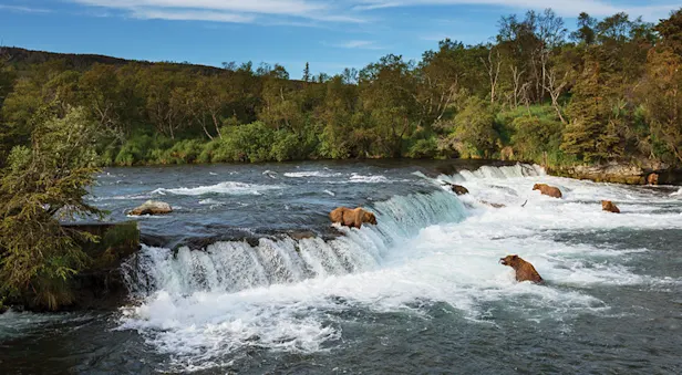 The weather pages below are specific to Nat Hab's different Alaska itineraries. Alaska Grizzly Encounter: Kodiak to Katmai takes place in Katmai National Park from June to September, the Ultimate Alaska Wildlife Safari explores many of the state's national parks and reserves and occurs from June through August, Nat Hab's Alaska Bear Camp takes place in Lake Clark National Park from May through August, and Alaska Fat Bear Photo Expedition is in September.