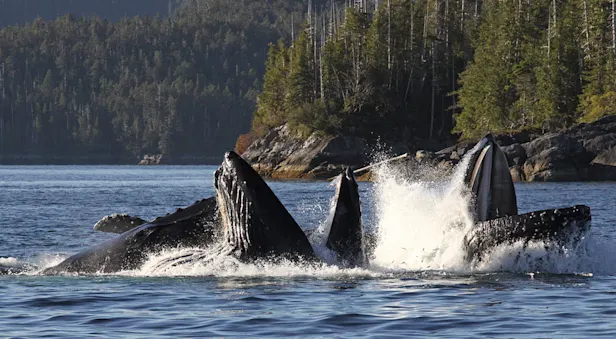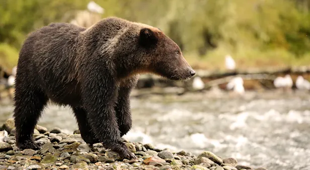 The natural abundance of the Great Bear Rainforest is astounding. As you navigate Canada's Inside Passage, you'll sail past pods of orcas and breaching humpback whales. Bald eagles soar overhead, and grizzles can be found fishing from salmon-rich streams. You are in the realm of the spirit bear—this rare creamy-white Kermode bear lives exclusively along a wild portion of the British Columbia coast.Click the links below to learn more about each species.
