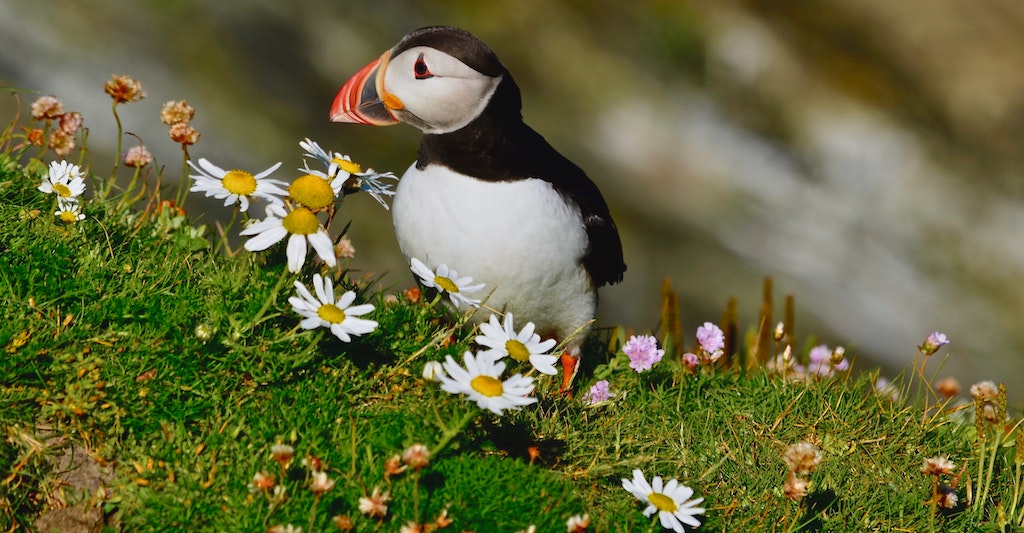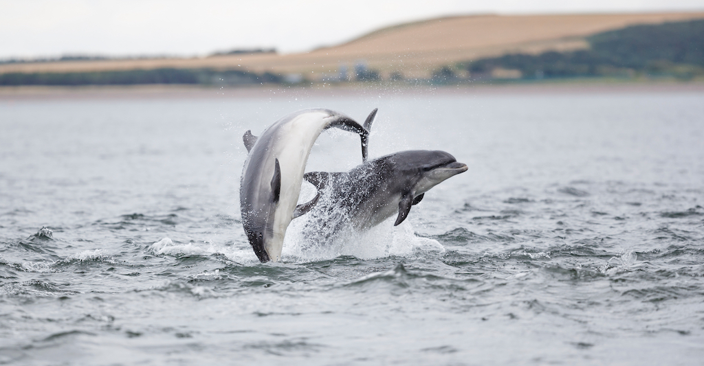Scotland lies at the intersection of the North Sea and the warm Atlantic Gulf Stream. These waters are rich in nutrients and support an incredible array of marine mammals such as bottlenose dolphins, Atlantic grey seals, minke whales and basking sharks. Scotland's secluded isles are safe haven to sea birds—guillemots, razorbills, cormorants, giant skuas, kittiwakes, fulmars, puffins and more. In the highlands, red deer roam and golden eagles soar overhead. Pine martens hide in the hollows of trees, river otters snatch trout from rushing waters and the rare Scottish wildcat prowls.