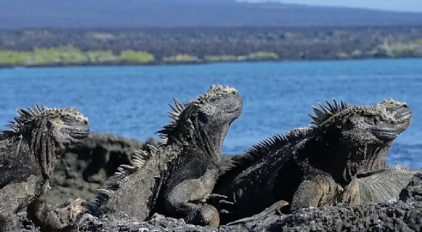Marine Iguana | Sunbathing on lava rocks | Land hike, shoreline |