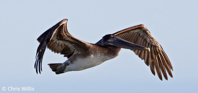 The brown pelican is instantly recognizable; with its huge pouched bill and large size (4 feet long with a 6.5-foot wingspan), it is often the first bird that visitors identify. As its name suggests, these pelicans are generally brownish in color. During the breeding season, however, the adults have bright white and chestnut markings on their heads and necks. They nest year-round in most of the islands.