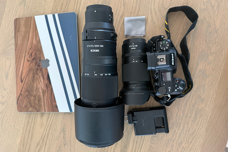 I prefer to keep a light and uncluttered bag. Sometimes I will just go out into the field with just my camera body and my long lens. When I'm traveling, though, I always have both lenses, my backup batteries and SD cards, my camera body and my computer.