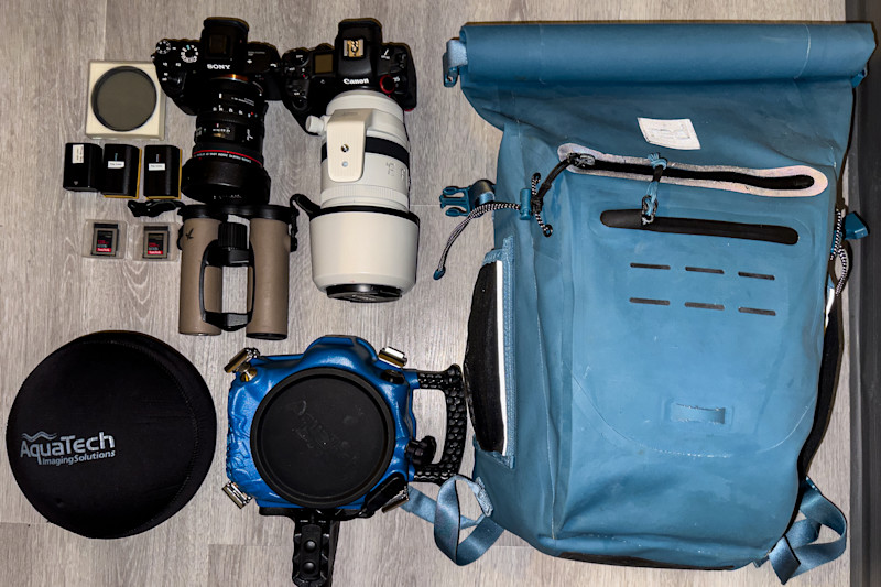 I keep my camera bag light, with just two or three key lenses—a telephoto zoom and a wide-angle lens—ensuring easy transport and maximum mobility on flights and expeditions. This streamlined setup keeps me ready for professional photography in any environment.